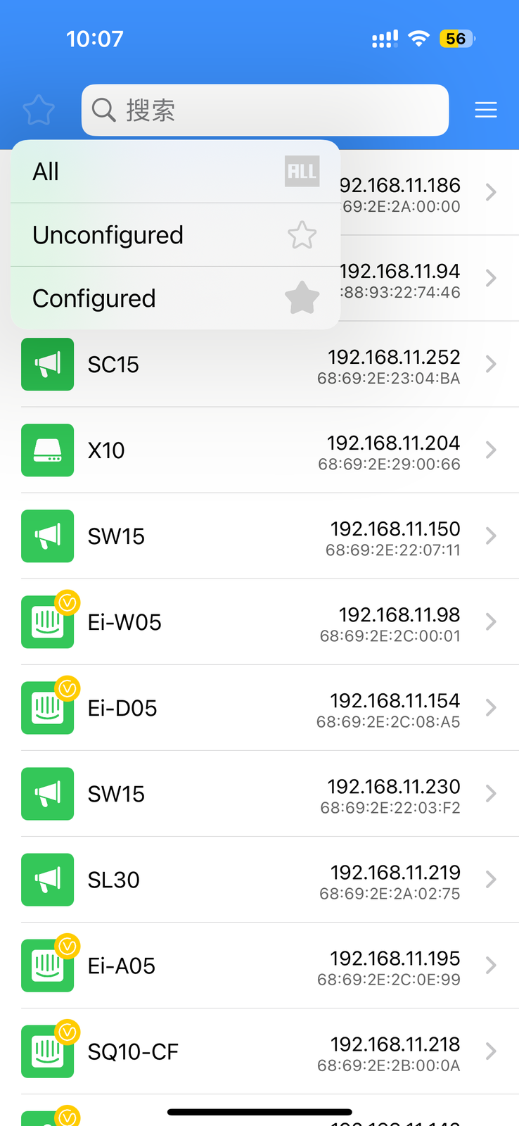 3.设备分类管理,降低使用门槛:设备太多不知道哪些配置过了?不用担心,ZYCOO AudioConfig支持打上已配置、未配置的两种标签,客户可以自由按配置状态筛选设备,杜绝设备太多眼花缭乱的情况发生。简单的操作界面,带来更优质的客户体验。