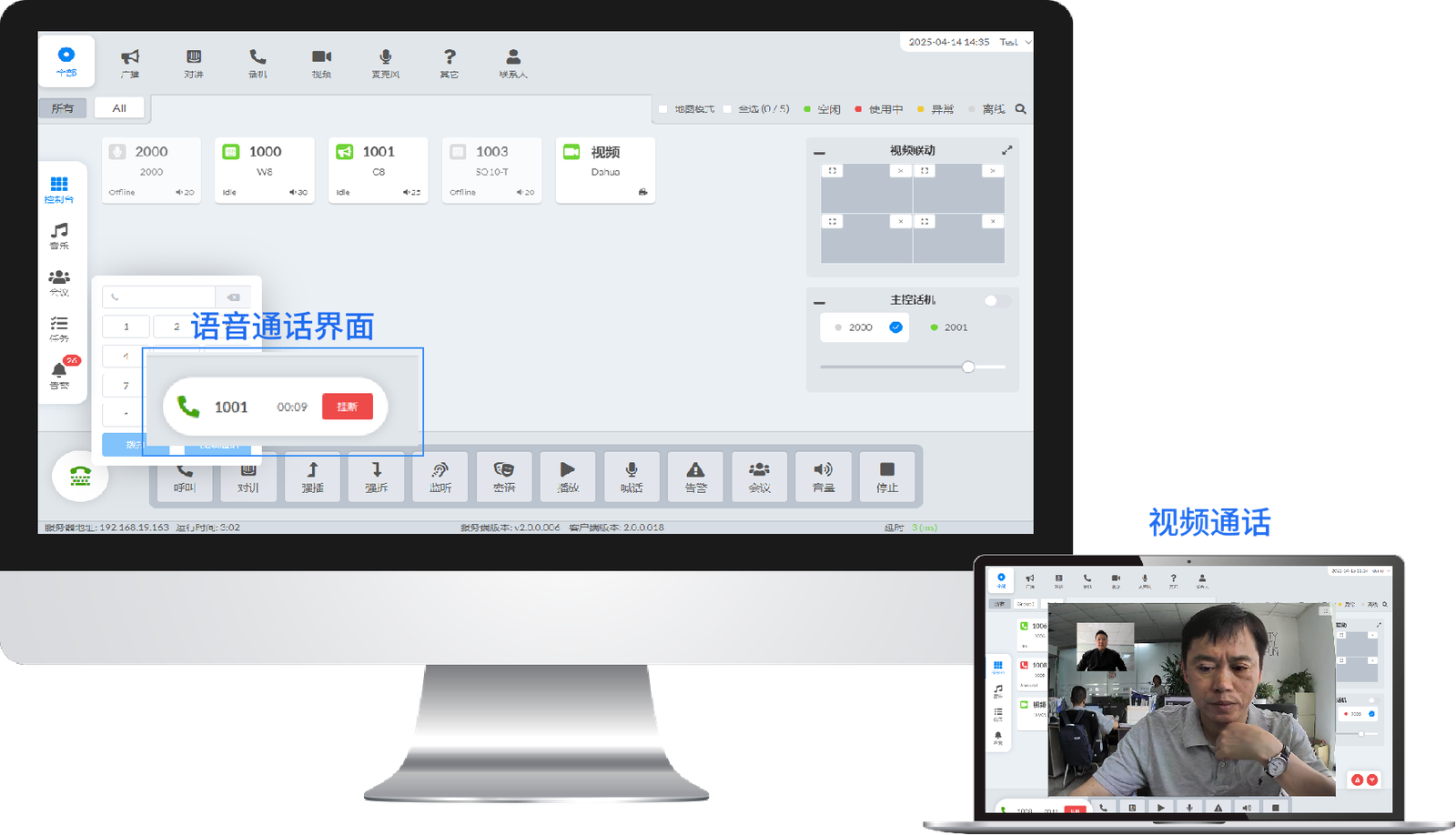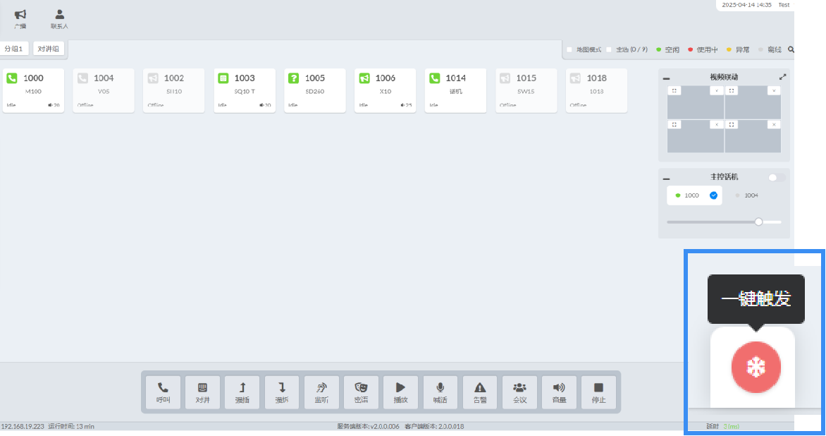 新一代SIP融合通信系统实现了电话终端与安防终端的深度融合,构建起双向通话智能化交互体系。通过PC端控制平台内嵌的主控电话功能,可以快速实现电话调度、视频通话等全新应用。为客户进一步降低设备成本,提升管理效率。