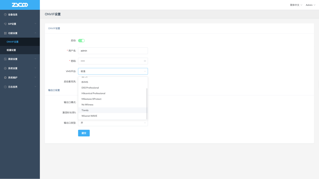 VMS 平台兼容配置:在功能设置→ONVIF 设置界面,增加了对不同 VMS 平台的兼容配置。