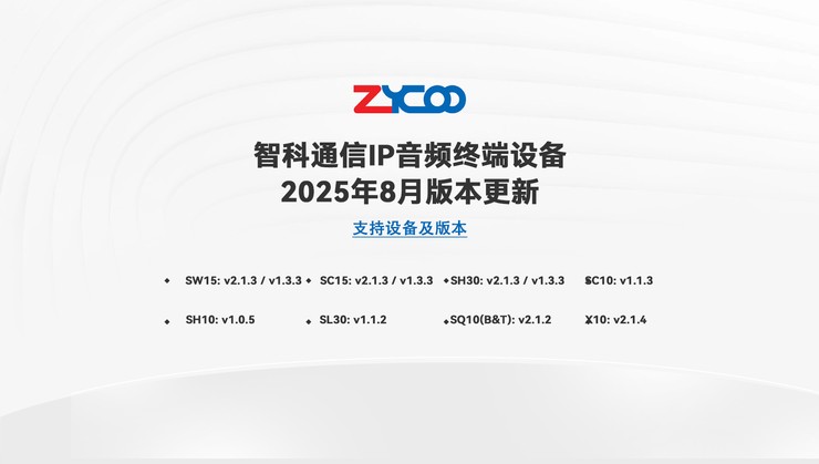智科通信推出 IP 音频终端设备软件升级,针对系统功能性、稳定性及兼容性等方面进行全方位优化,使得设备运行更流畅,兼容更广泛,为用户打造更优质的音频体验。本次更新覆盖多款设备型号,新增多项功能,实施关键优化,修复漏洞。