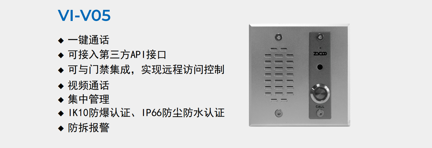 核心设备:SW15网络壁挂音箱、VI-V05网络对讲