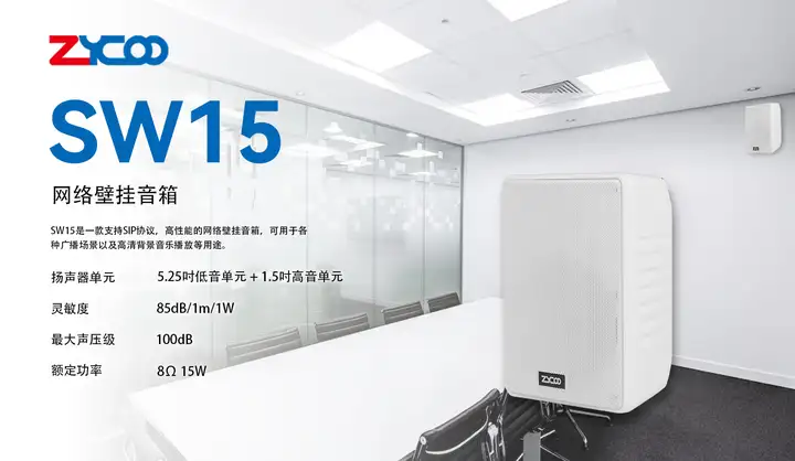 SW15是一款支持SIP协议,高性能的网络壁挂音箱,可用于高清背景音乐与各种广播场景等用途,为学校、商场、酒店等场所提供专业的IP音频解决方案,确保广播信息高效、精准的传达。